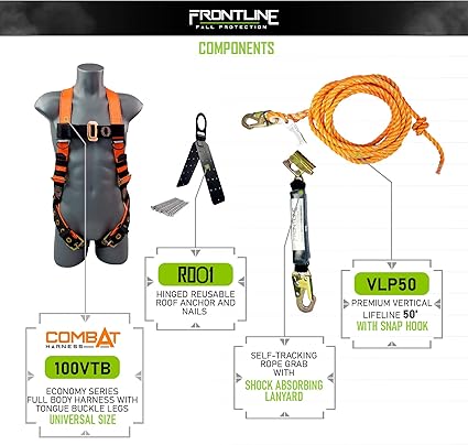 Msa 10092958 Workman Roofer Fall Protection Kit Includes Standard Size Vest Style Harness With Tongue Buckle Leg Straps And 50 Rope Lifeline Amazon Com Industrial Scientific
