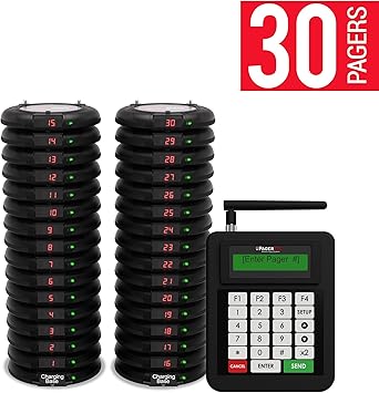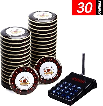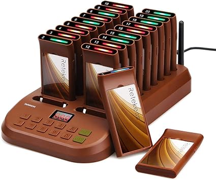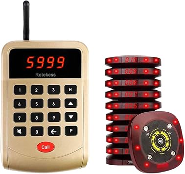 Retekess t112 restaurant buzzer pager system 20 pagers wireless calling system 12h 360mah rechargeable long range 3 calling modes 999 channel fast food snack hotel hospital warehouse queue system 4 4 out of 5 stars 14.