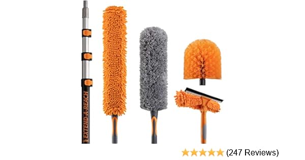 The long reach dusting system has everything you need to clean the baseboards the ceiling fans and everything in between.