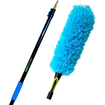 The telescoping handle reaches up to 8 and the 3 interchangeable heads can be pivoted and locked to allow you to reach a variety of places for thorough dusting.