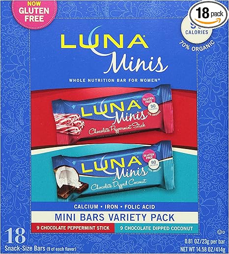 Luna bar gluten free bars chocolate peppermint stick 1 69 ounce snack bars 15 count packaging may vary 4 6 out of 5 stars 964 14 99 14.