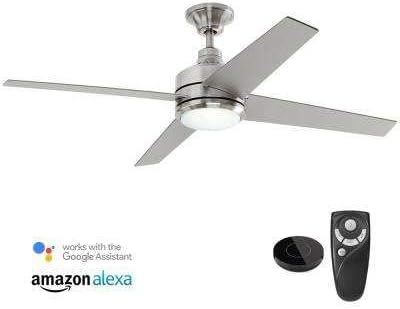 Integrated led indoor white ceiling fan with light kit and remote control add a contemporary look to your home with add a contemporary look to your home with the home decorators collection mercer 52 in.
